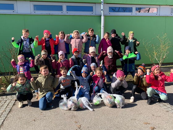 Sauberer Pausenhof: Die Klasse 1c packt an