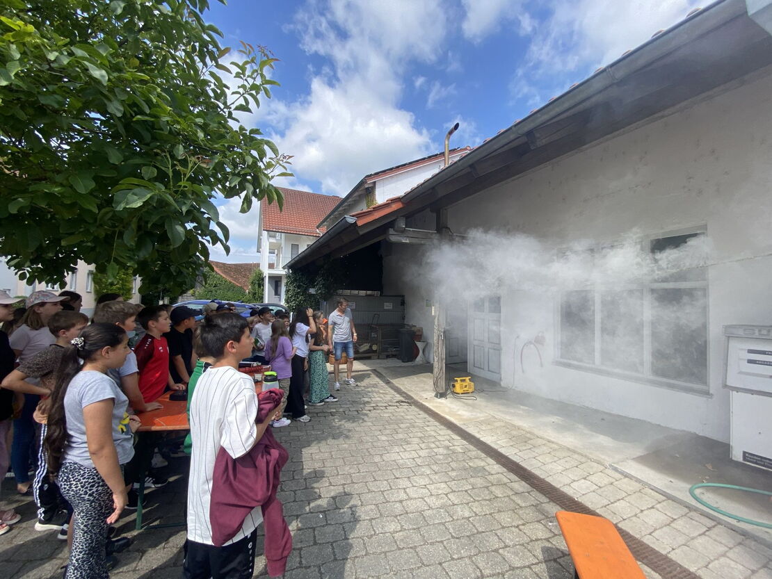 Die Schülerinnen und Schüler der Klasse 4b und 4c erlebten heute einen spannenden Tag im Wasserkraftwerk der Familie Schmid in Mamming. Die Kinder konnten unmittelbar erleben, wie Strom aus dem Bachlauf gewonnen wird. Nach einer Brotzeit, die durch Familie Schmid zur Verfügung gestellt wurde, wurden verschiedene Experimente rund um das Thema Strom durchgeführt. Unvergessen bleibt den Schülern dabei sicherlich die absichtliche Erzeugung eines Kurzschlusses. Der Vormittag wurde mit einem Highlight abgeschlossen, als auch noch der externe Motor des Kraftwerks gestartet wurde!