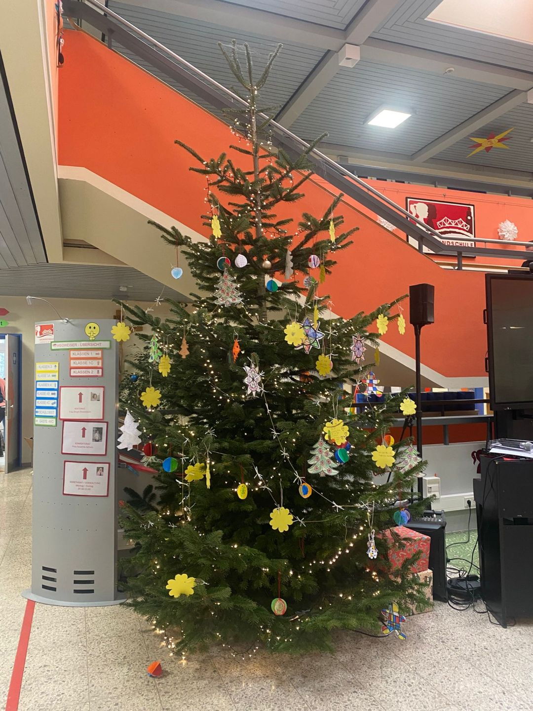 Erstmals schmückte ein Christbaum die Aula der Grundschule und sorgte für eine festliche Stimmung. Organisiert wurde der Baum von Frau Mai vom Elternbeirat. Ein herzlicher Dank gilt auch der Familie Elsberger aus Kleinkager für die großzügige Spende. Im Laufe der Adventszeit schmückten die Kinder den Baum mit selbst gebastelten Dekorationen und machten ihn so zu etwas ganz Besonderem.