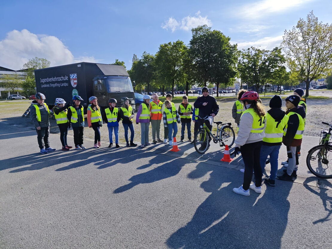 Die 4.Klassen starten zur Ausbildung bei der Jugendverkehrsschule unter der Leitung von Frau Huber und Herrn Lex.