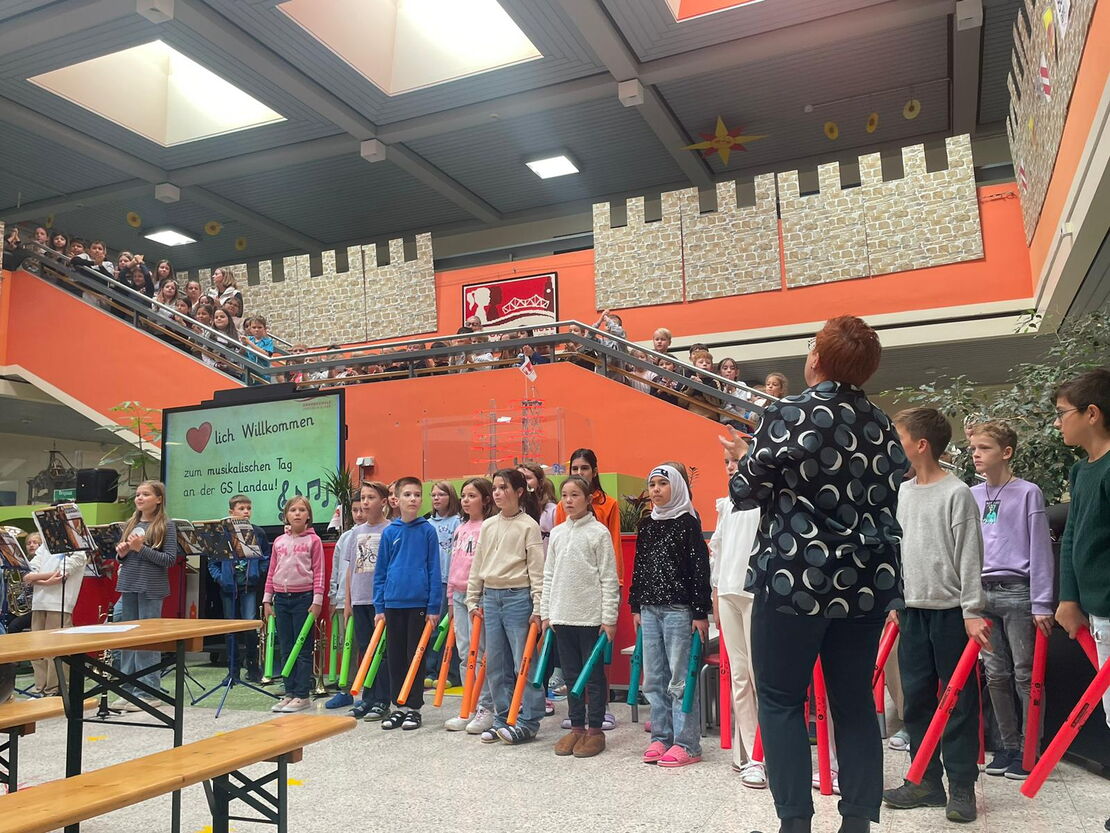 Die musikalische Grundschule Landau lud vergangenen Mittwoch zum musikalischen Tag ein. Die Bläserklasse und Ganztagsklassen begrüßten viele musikbegeisterte Lehrkräfte in der Aula. Die Musik-Fachberater aus ganz Niederbayern boten abwechslungsreiche Workshops an.