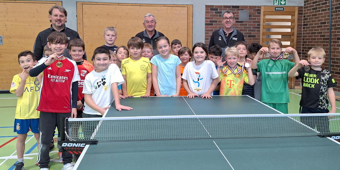 Der Tischtennisclub Landau a.d.Isar hat an den Orientierungs- bzw. Entdeckertagen für Schüler der 3. und 4. Klassen an der Grundschule Landau a.d.Isar teilgenommen. Jugendleiter Klaus Balda und Günter Hoch und Hubert Lommer konnten 20 Schülerinnen und Schüler hierzu begrüßen. Der Tag begann mit einer Vorstellung des Vereins und mit Erläuterungen zum Tischtennissport, welches die schnellste Rückspielsportart ist. Die Kinder lauschten interessiert den Ausführungen und dann begann der Tag mit Geschicklichkeitsspielen, die dazu dienten, den Umgang mit Schläger und Ball zu erlernen. Zum Abschluss des Tages gab es dann noch ein Turnier, bei dem alle mit Begeisterung dabei waren. Dabei konnte so manches Talent entdeckt werden. Für die Sieger des Geschicklichkeitsspiels sowie des Turniers hatte der Verein Gold-, Silber- und Bronzemedaillen dabei. Auf dem Foto sind die Schülerinnen und Schüler mit v.l. Klaus Balda, Günter Hoch und Hubert Lommer zu sehen.