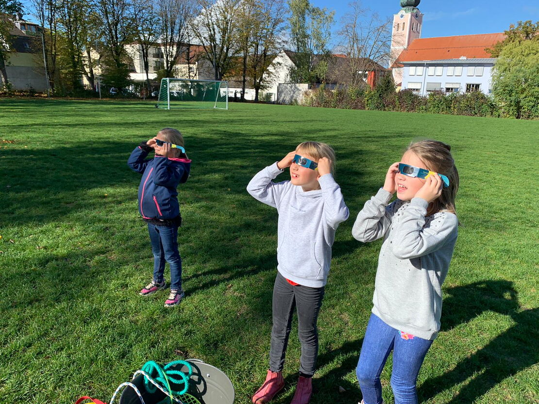 Die Klasse 2a beobachtete heute - perfekt geschützt- die Sonnenfinsternis.